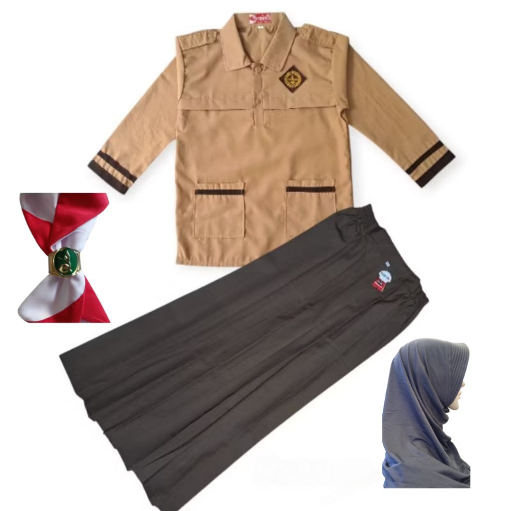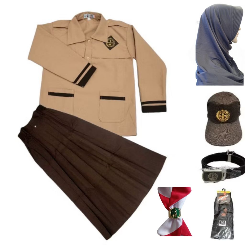 Seragam Sekolah lengkap Dasi Jilbab topi Anak SD Perempuan | Setelan Paket Seragam Baju Pramuka Siaga Lis Lengan Panjang