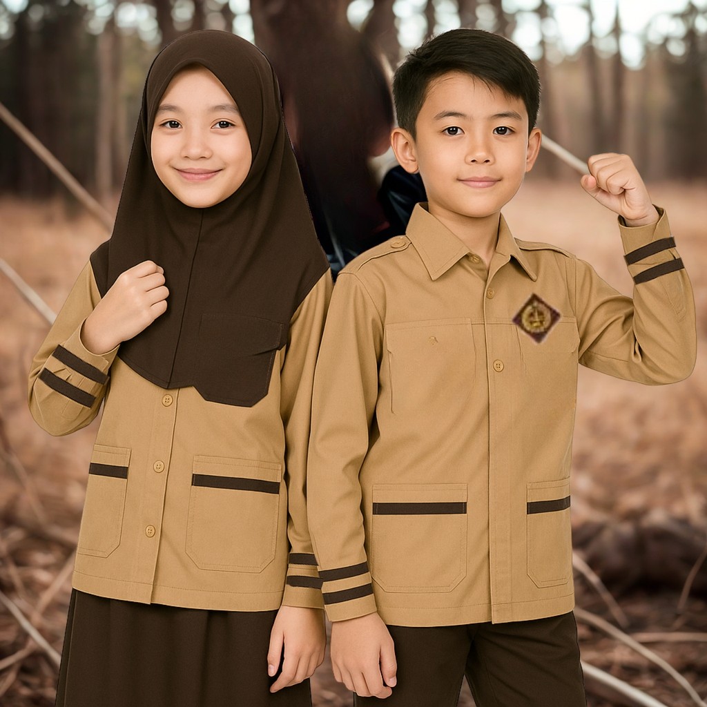 Baju Pramuka Sd Anak Laki Perempuan Seragam Coklat Siaga Atasan Kancing Sekolah Panjang Kemeja