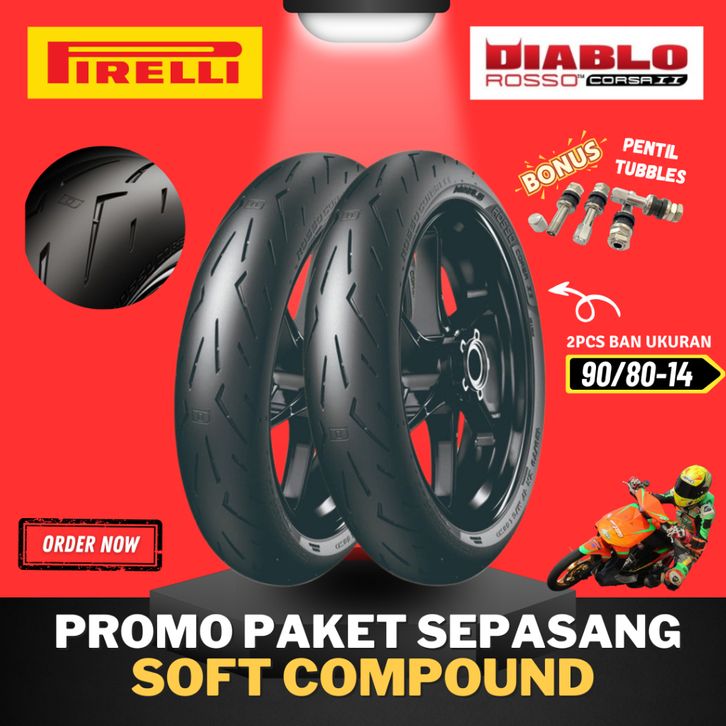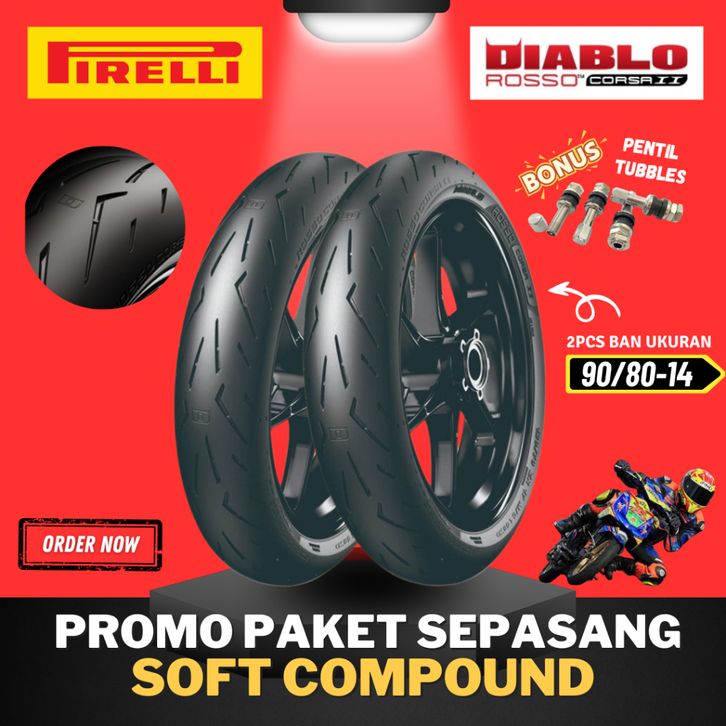 [PAKET SEPASANG 2 BAN] BAN PIRELLI DIABLO ROSSO CORSA 2 RING 14 ( 90/80-14 ) SOFT COMPOUND RING 14 17 / BAN BALAP PIREEL
