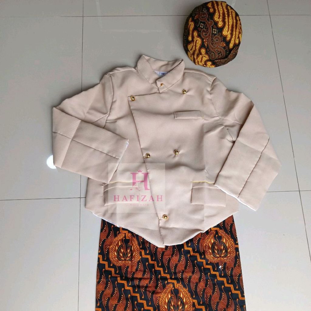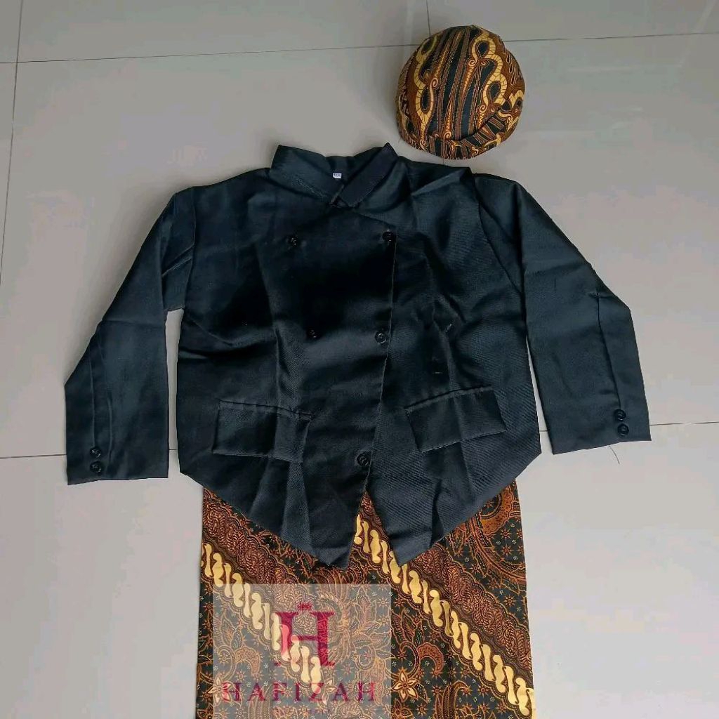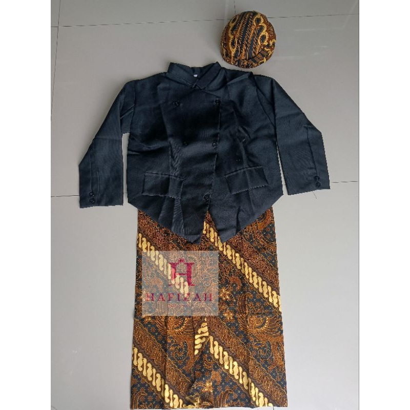 Hafizah - Setelan Beskap Anak TK SD Lengkap Rok Wiru & Blangkon Solo Motif Random Cocok untuk Karnaval & Upacara Adat Ja