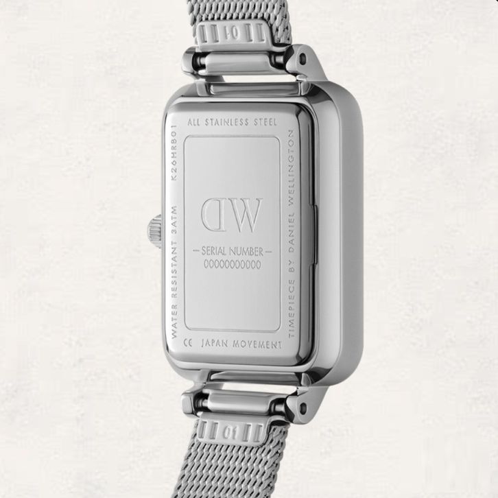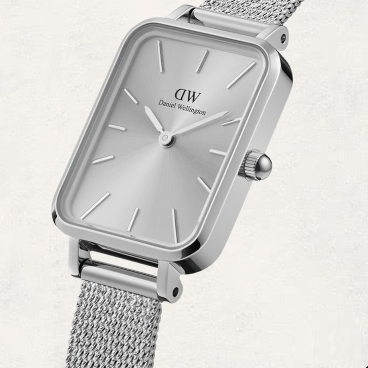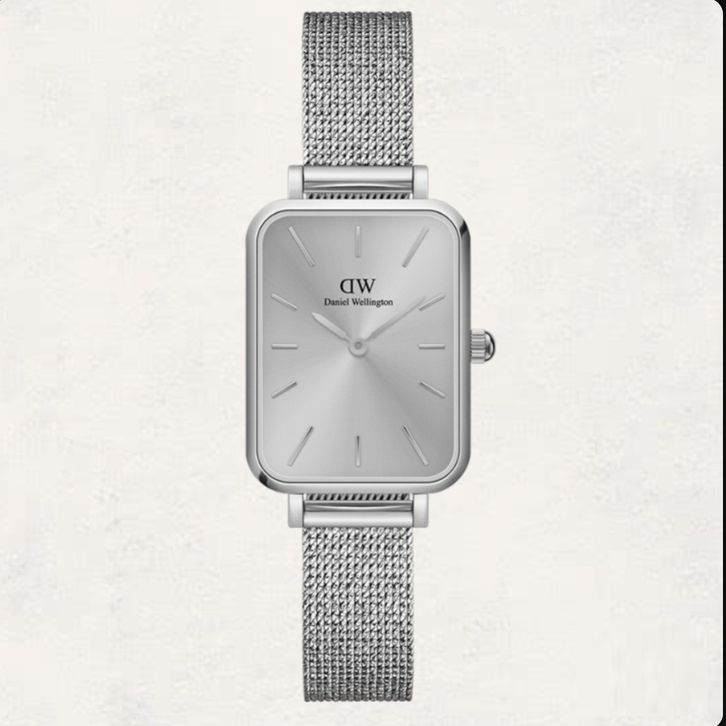 JAM TANGAN WANITA DANIEL WELLINGTON QUADRO PRESSED STERLING SILVER GREY STAINLESS STEEL FREE ONGKIR - FREE BOX