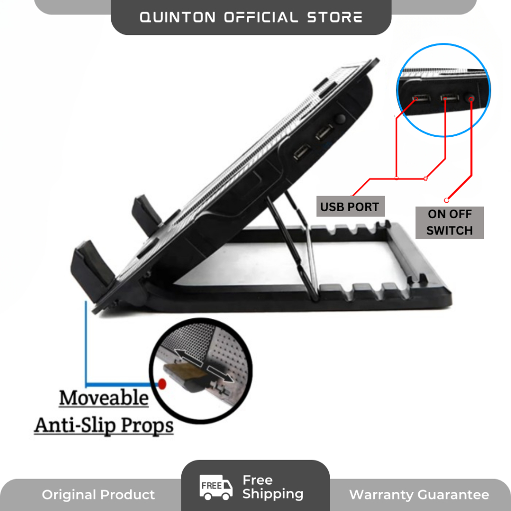Cooling Pad Laptop QUINTON Ergostand NC88 Kipas High Speed 15.6 Inch dengan Kaki Besi
