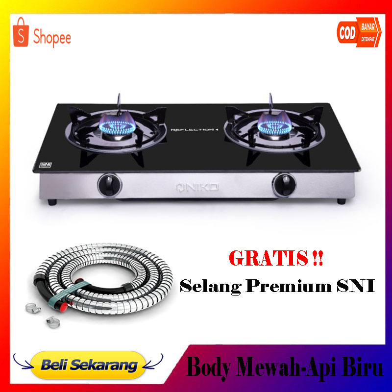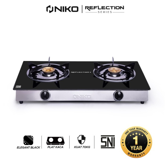Kompor Gas 2 Tungku Promo NIKO Reflection 4 Kompor Kaca Tempered Glass 7mm Freee Slang Regulator SNI Super Murah
