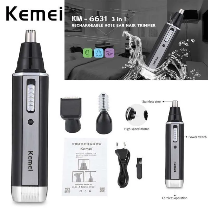 GRATIS ONGKIR ALAT CUKUR KEMEI KM 6631 Nose Trimmer 3 in 1 Alat Cukur Bulu Hidung Alis Kumis Jenggot