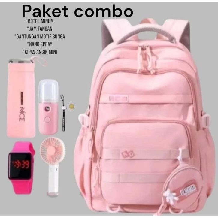 PAKET COMBO 6in1 - Tas Ransel Sekolah Anak Perempuan Sd Smp korean style Tas Sekolah Anak Perempuan Motif AD terbaru