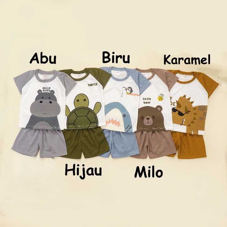ISI 5 SETEL Setelan Anak & Bayi Laki Laki Raglan Animal Earthtone Series/ Baju Anak Laki Laki / Baju Bayi / Setelan Bay