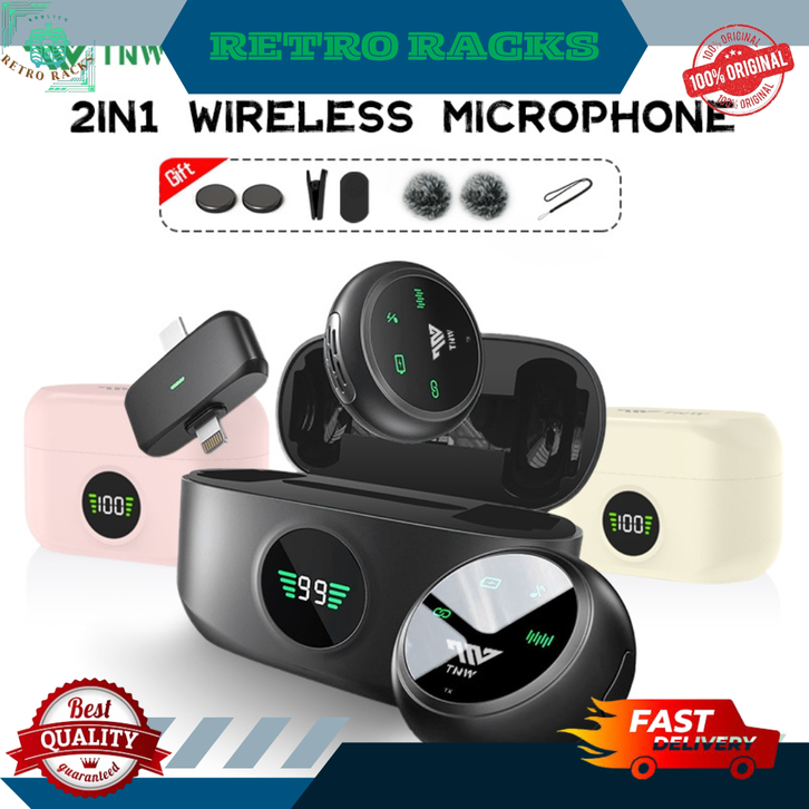 wireless microphone 2 in 1 clip on mic magnetic mikrofon hp plug & play dual lavalier with charging case