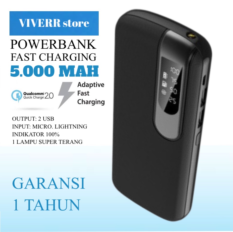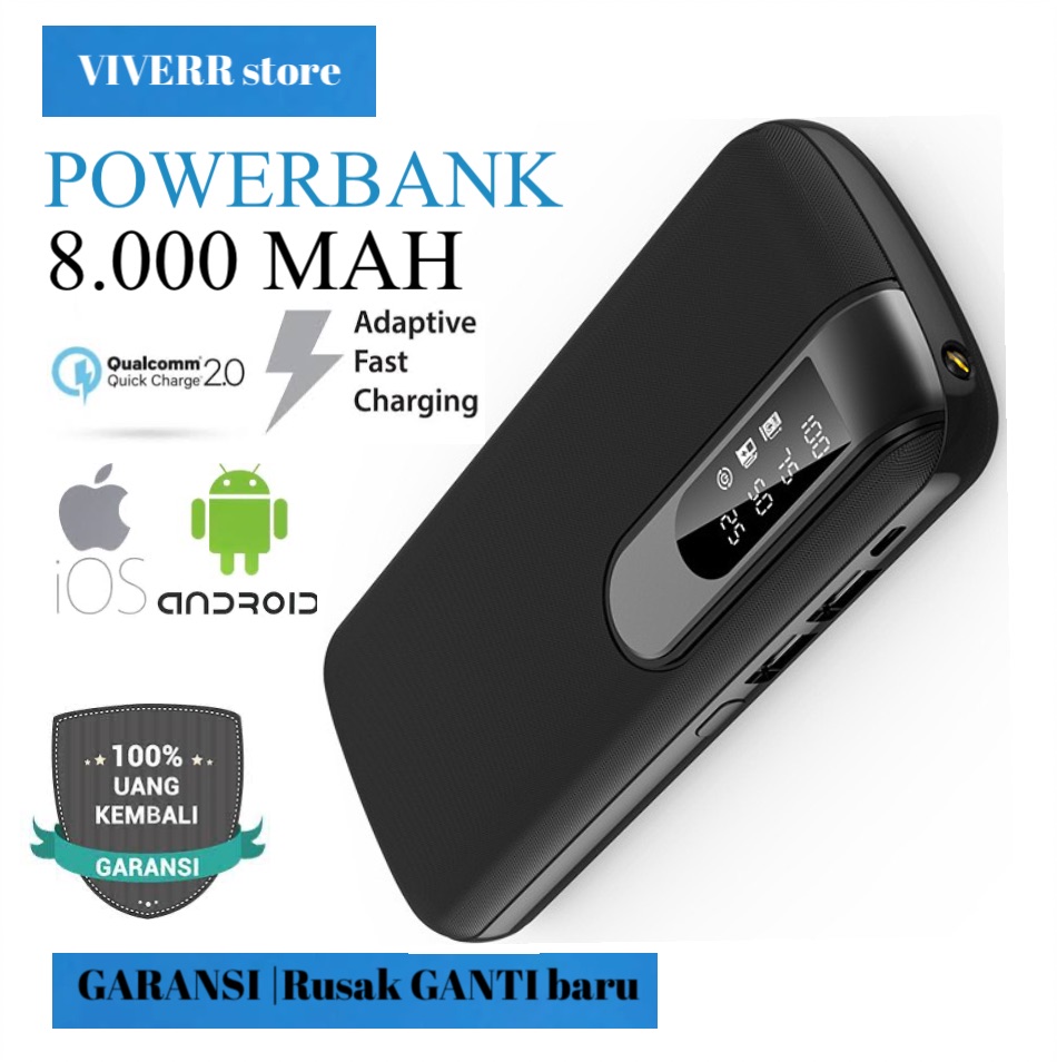 VIVERR Powerbank U2 kapasitas 8.000 Mah Dual Output Garansi 1 Tahun.