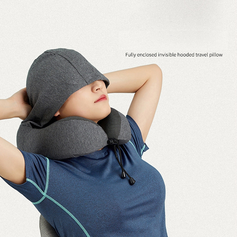 Bantal Kepala Traveling Multifungsi Hooded Neck Pillow Bantal Perjalanan Jauh Busa Memori