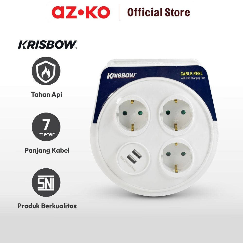 AZKO Krisbow Kabel Roll Dengan Usb 7 mtr 2.4a Cable Reel Terminal Colokan Listrik Peralatan Elektronik Kabel Sambungan G