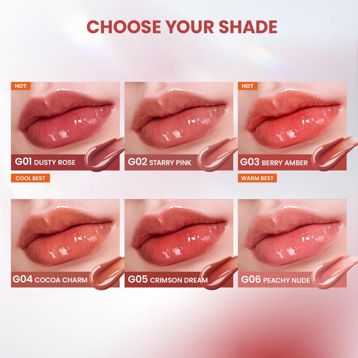 G01 Dusty Rose , G02 Starry Pink , G03 Berry Amber, G04 Cocoa Charm , G05 Crimson Dream , G06 Peach Nude