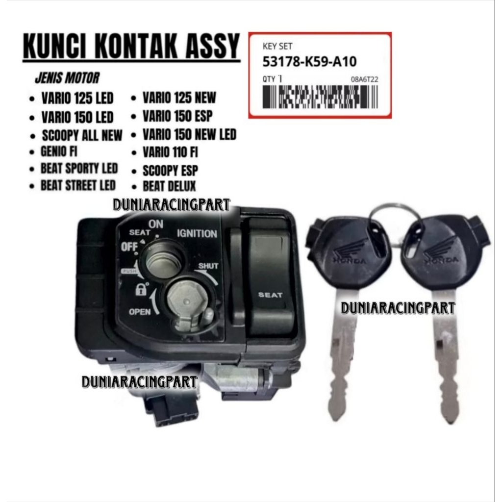 FREE ONGKIR KUNCI KONTAK + TOMBOL JOK K59/K60 SCOOPY ( 2015-SEKARANG ) GENIO VARIO 125/150 LED,VARIO 110 FI K59