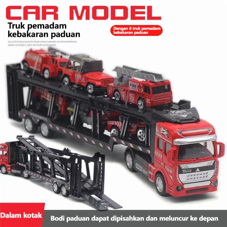 ZCTOY 6 IN 1 Pull Back Paduan Kendaraan Truk Container Pengangkut Mainan Mobil Mobilan Excavator Bulldozer Drill Constru