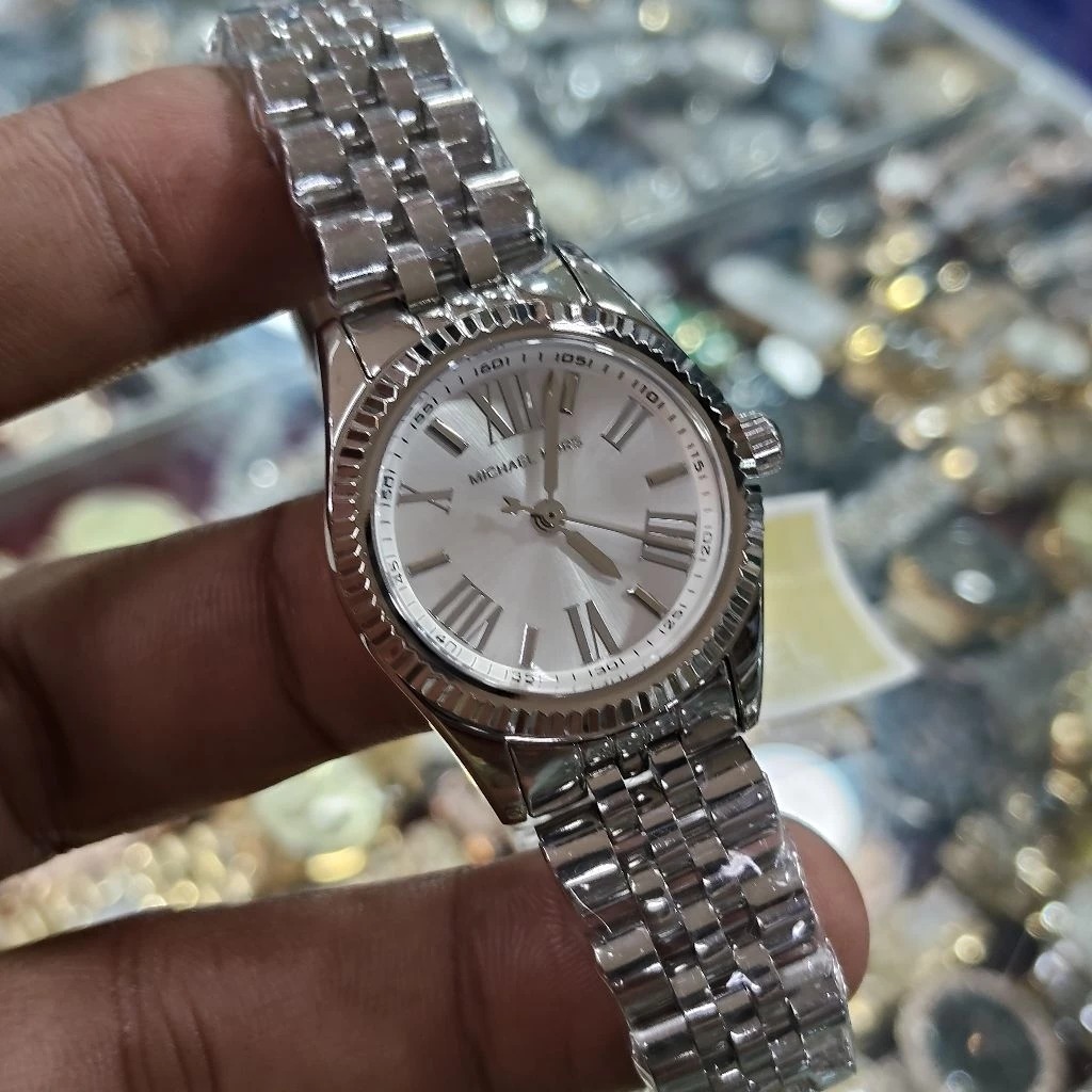 JAM TANGAN WANITA MICHAEL KORS MINI LEXINGTON MK4843 / MK 4843 SILVER STAINLESS STEEL ORIGINAL - FREE ONGKIR