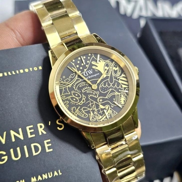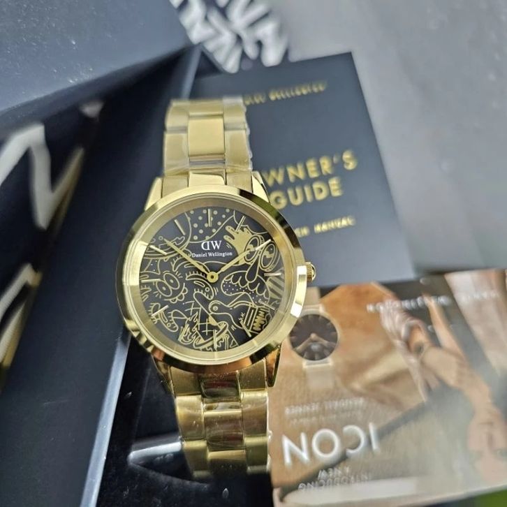 JAM TANGAN WANITA DANIEL WELLINGTON ICONIC HARRINGTON GOLD STAINLESS STEEL FREE ONGKIR - FREE BOX