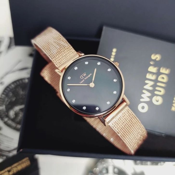 JAM TANGAN WANITA DANIEL WELLINGTON PETITE LUMINE PIANO MELROSE ROSEGOLD BLACK PEARL STAINLESS STEEL FREE ONGKIR