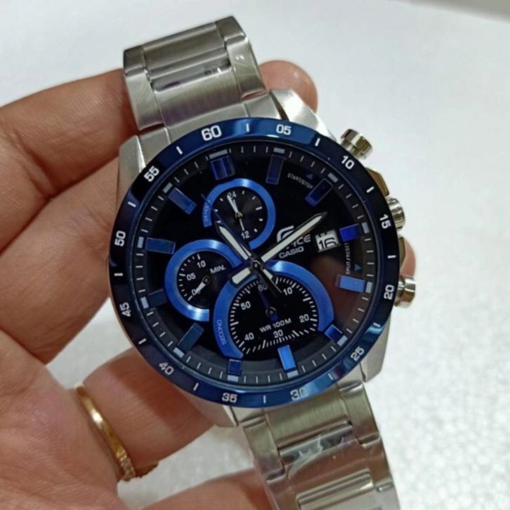 JAM TANGAN PRIA CASIO EDIFICE EFR-571 SILVER BLUE ORIGINAL- FREE ACCESORIES - FREE ONGKIR