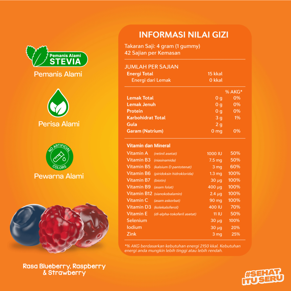 Multivitamin Gummy Dewasa untuk Imunitas | Youvit Multivitamin Dewasa 30 Hari dengan Vitamin C, Vitamin D, Zink & Superberries