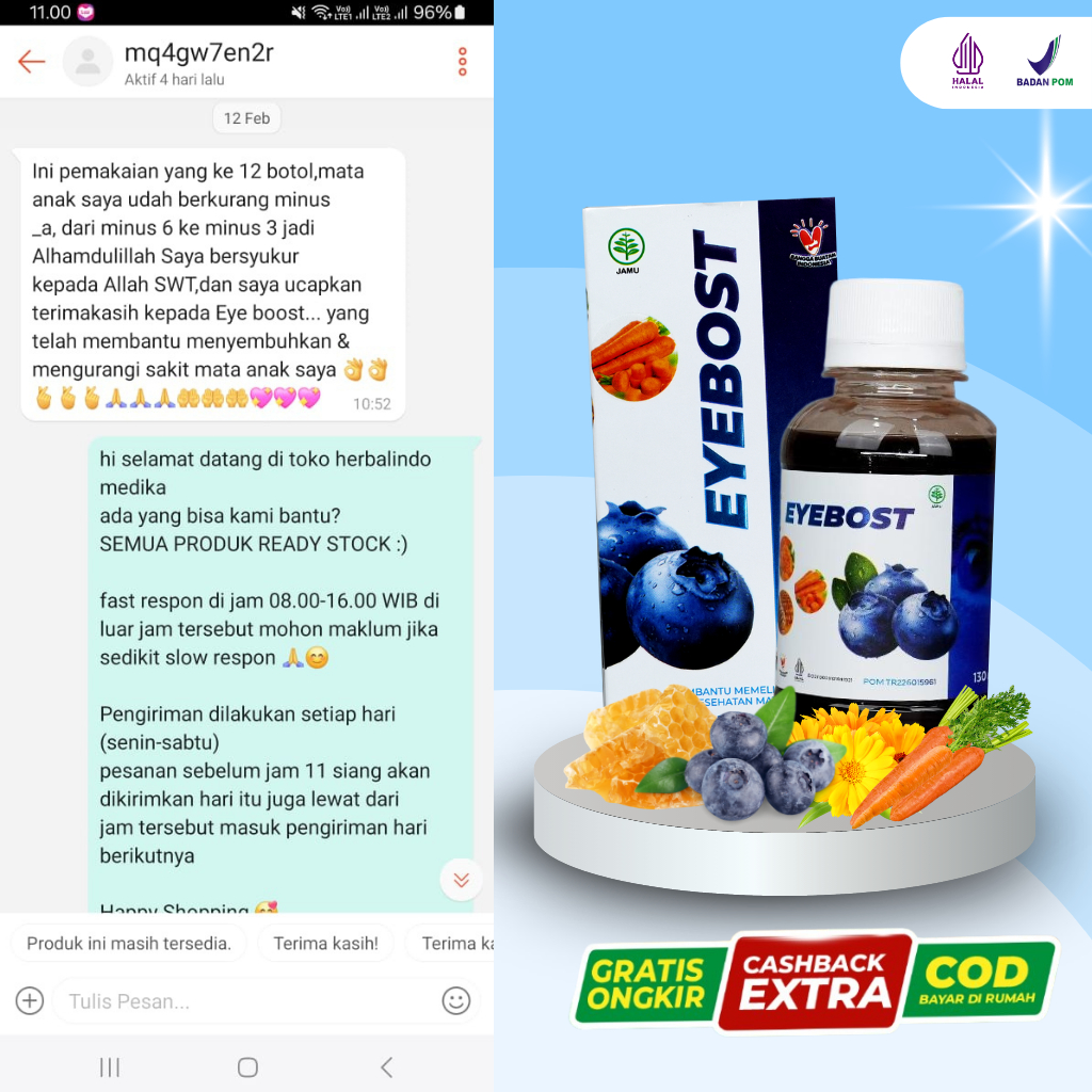 Eyebost 1 Botol Obat Herbal Katarak Mata Minus Dan Buram Madu Vitamin Kesehatan Mata Original