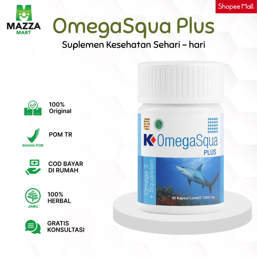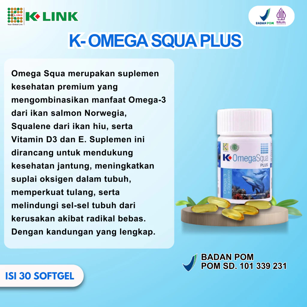 Omega Squa Plus K-link Original Suplemen Makanan Premium Minyak Ikan Squalene Vitamin D3 Omega3