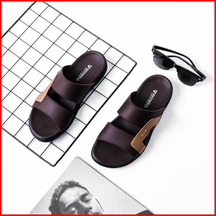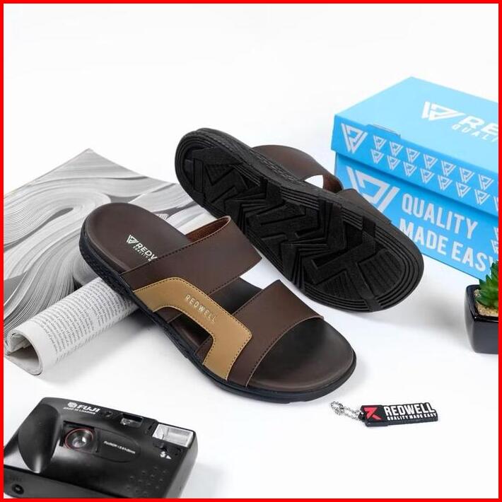 Gurosutasu-sandal Kulit Pria Slip On Nadeo 003 Series Coklat Hitam Karet