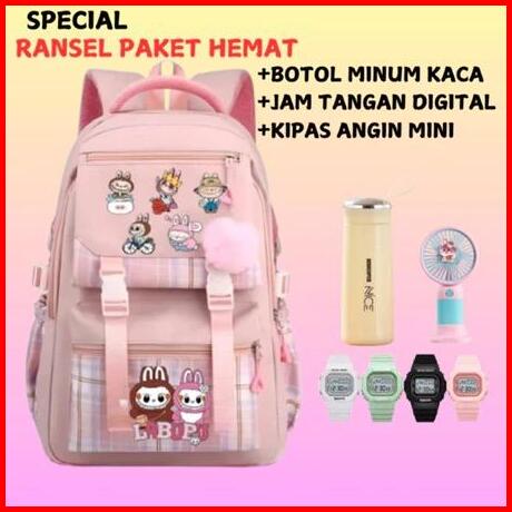 Gurosutasu-tas Ransel Anak Perempuan Model Terbaru Untuk Sekolah Sd Dengan Fre Botol Minum Dan Jam Impor Kipas Import-fa
