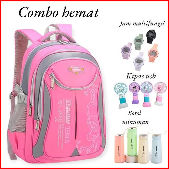 Gurosutasu-pink Tas Sekolah Anak Model Terbaru 378-yg Yazlong Dengan Botol Minuman Jam Multifungsi Kipas Usb Combo Hemat