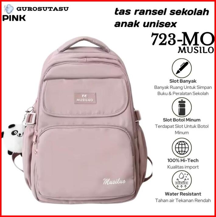 Gurosutasu-musiluo Tas Ransel Unisex Cewek Cowok Tas Gendong Polos Terbaru Tas Backpack Sekolah Sd Smp Sma Kekinian Fash