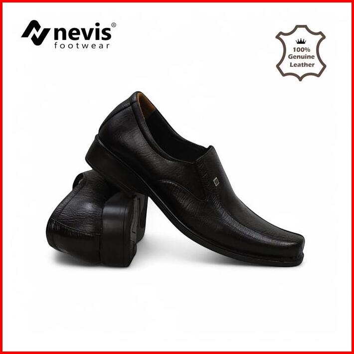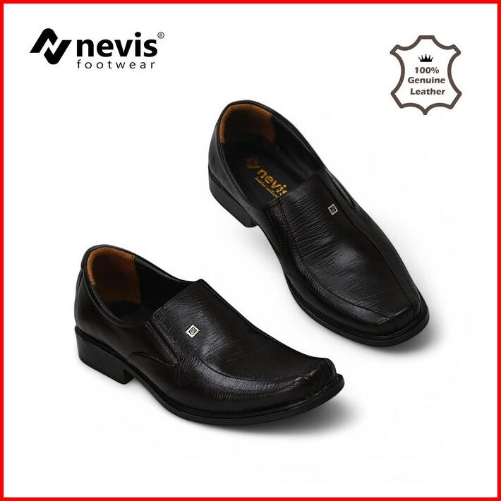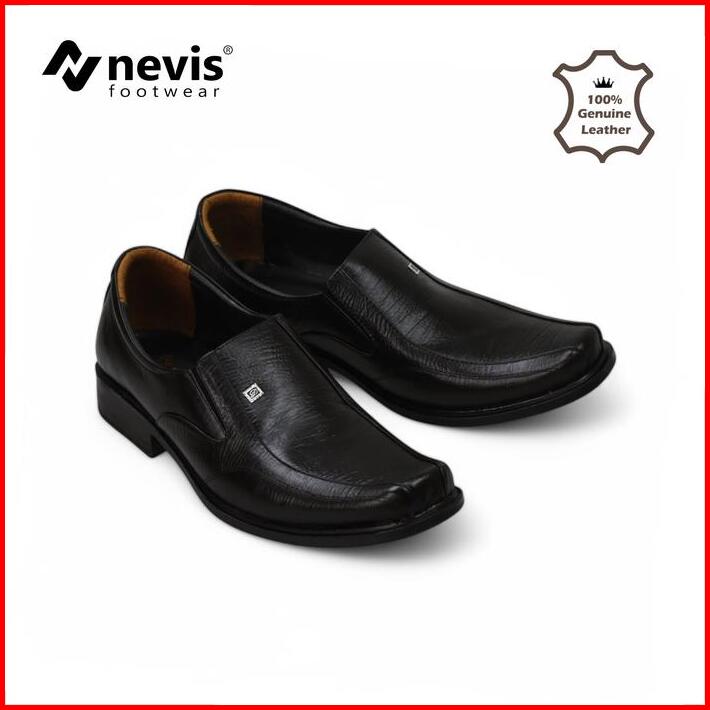 Nevis Sepatu Pantofel Pria Kulit Sapi Asli Valencia Formal Kerja Kantor Hitam Fantofel Shoes Hitam
