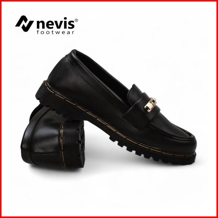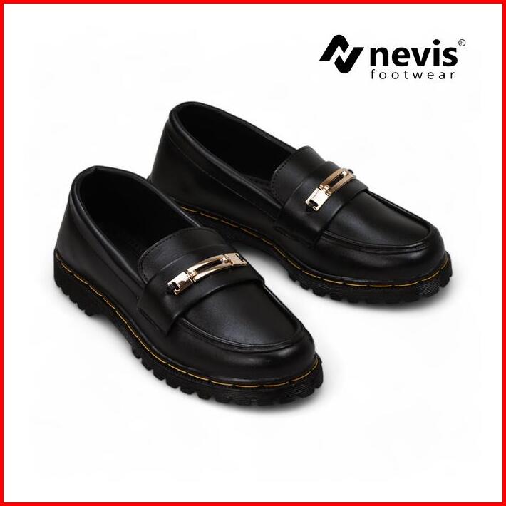 Nevis Jongseo Sepatu Docmart Wanita Marteen Slip On Loafers Shoes Korea Kerja Kantor Kuliah Hitam