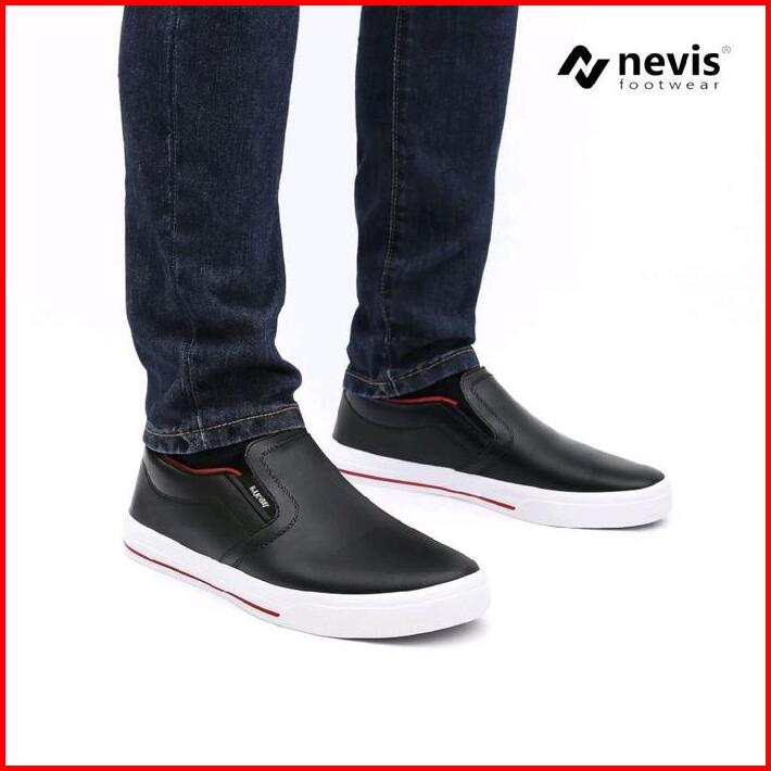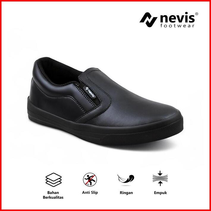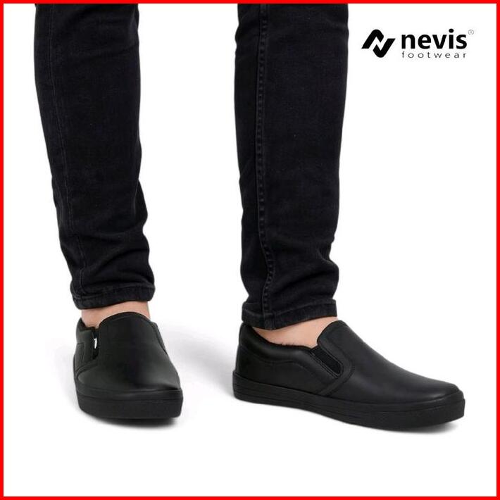 Nevis Sepatu Slip On Pria Wanita Veloz Casual Slop Sekolah Kerja Santai Sol Karet Flat Shoes Kasual Hitam