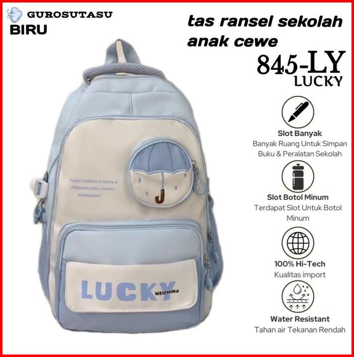 Gurosutasu-lucky Tas Sekolah Anak Perempuan Ransel Cewek Sd Smp Sma Kuliah Fashionable Dengan Karakter Lucu Payung Biru