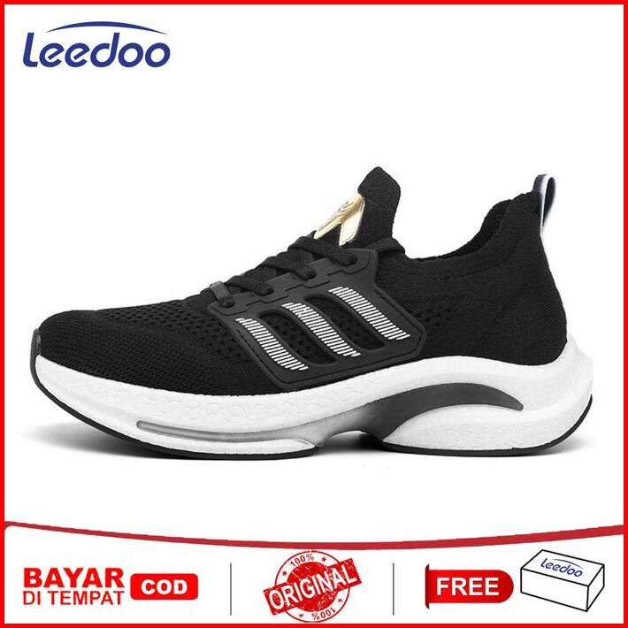 Leedoo Sepatu Sneakers Hitam Jogging Pria Sepatu Lari Cowok Casual Sepatu Kerja Kuliah Mr801