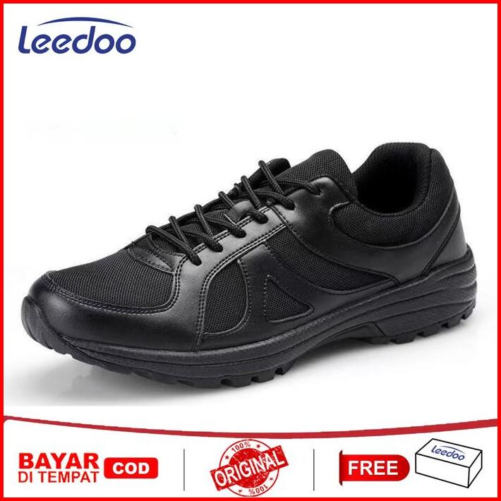 Leedoo Sepatu Sneakers Hitam Cowok Sepatu Kerja Casual Kulit Fashion Running Shoes Trendy Anti Slip Mc710