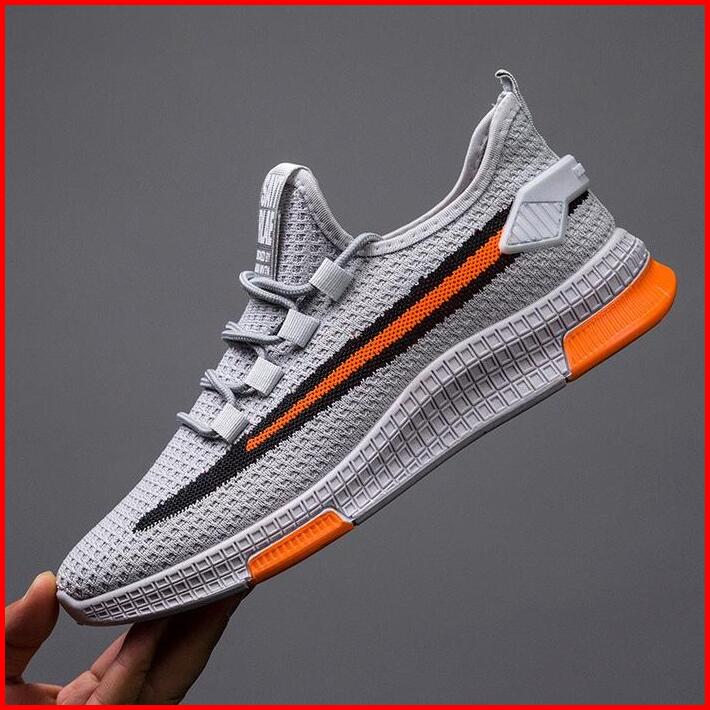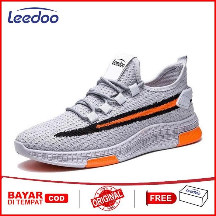 Leedoo Sepatu Sneakers Running Outdoor Pria Lentur Sepatu Pria Abu Orange Mr113