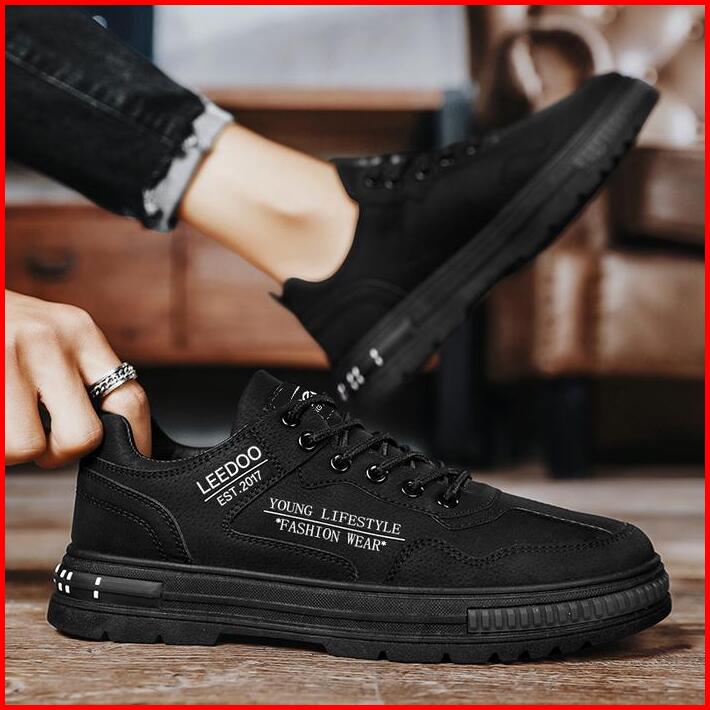 Leedoo Sepatu Casual Hitam Kerja Pria Kekinian Sepatu Kerja Sepatu Sneakers Running Shoes Karet Antiselip Sepatu Sekolah