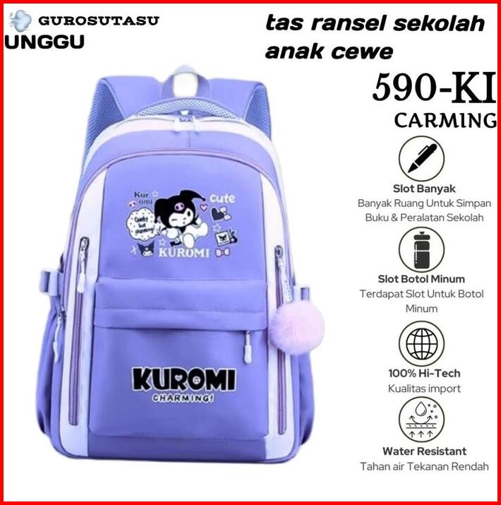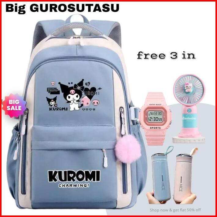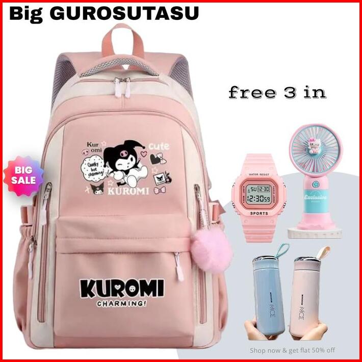 Gurosutasu-tas Ransel Sekolah Anak Perempuan Sd Smp Sma Motif Kurokmi Kanvas Imut Ringan Magnetis Free 3 In Set
