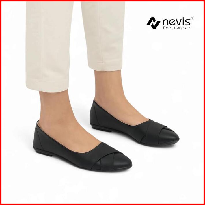 Nevis Sepatu Flat Shoes Wanita Elsa Sepatu Kerja Kuliah Formal Casual Santai Slip On Hitam