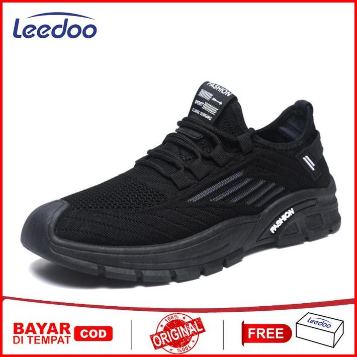 Leedoo Sepatu Sneakers Pria Casual Sepatu Olahraga Sepatu Fashion Cowok Kekinian Sepatu Kerja Kuliah Hitam Antiselip Mr1