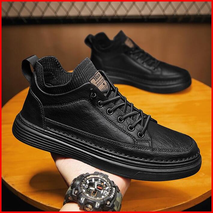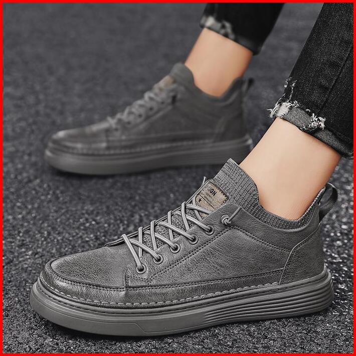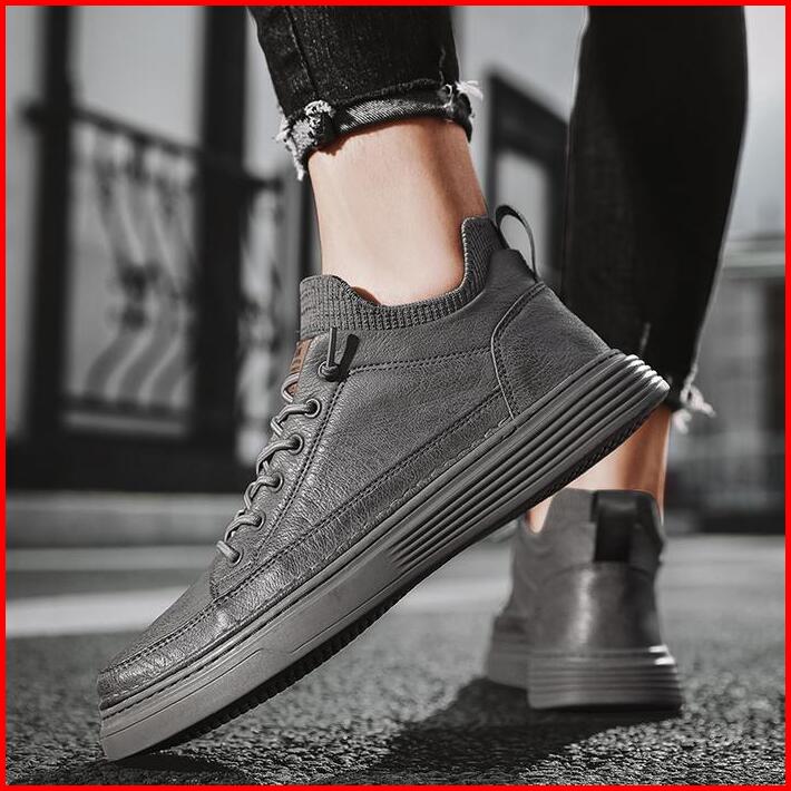 Leedoo Sepatu Boots Hitam Kulit Pria Tali Sepatu Pria Sepatu Sneakers Kerja Casual Abu Mc428