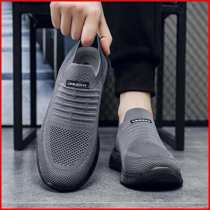 Leedoo Sepatu Slip On Pria Sepatu Cowok Running Sport Shoes Hitam Kekinian Sneakers Olahraga Antiselip Mr197