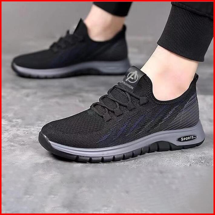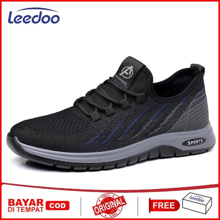 Leedoo Sepatu Sneakers Hitam Pria Olahraga Sepatu Kerja Cowok Shoes Jogging Kekinian Hitam Antiselip Mr171