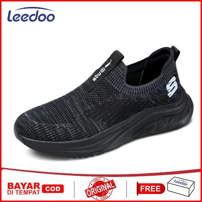 Leedoo Sepatu Hitam Pria Slip On Casual Sepatu Kerja Sneakers Cowok Shoes Olahraga Nyaman Hitam Antiselip Ml103
