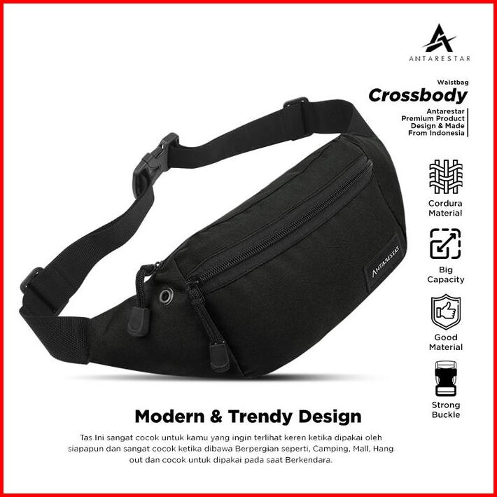 Antarestar Tas Waistbag Pinggang Slingbag Hitam Rendy Cross Body Antarestar Pria