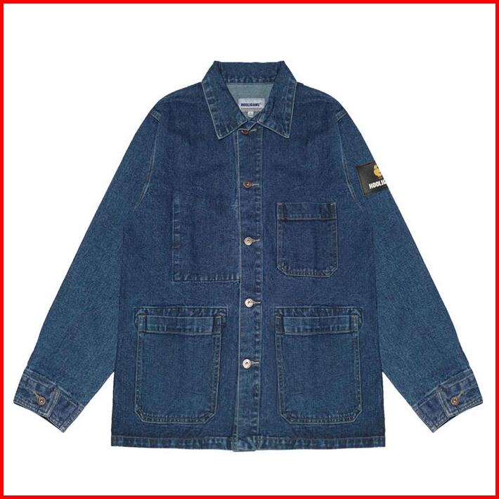 Hooligans Denim Jacket Dempsey Dark Blue Jaket Jeans Kancing Casual Pria Wanita