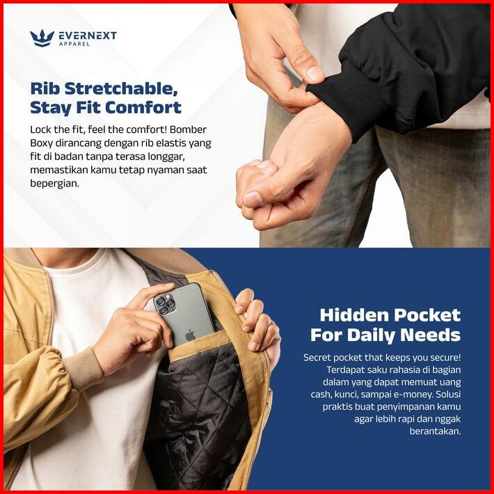 Evernext Jaket Bomber Pria Boxy Fit Kanvas Premium Padding Stylish Jakcket Outdoor Casual Riding