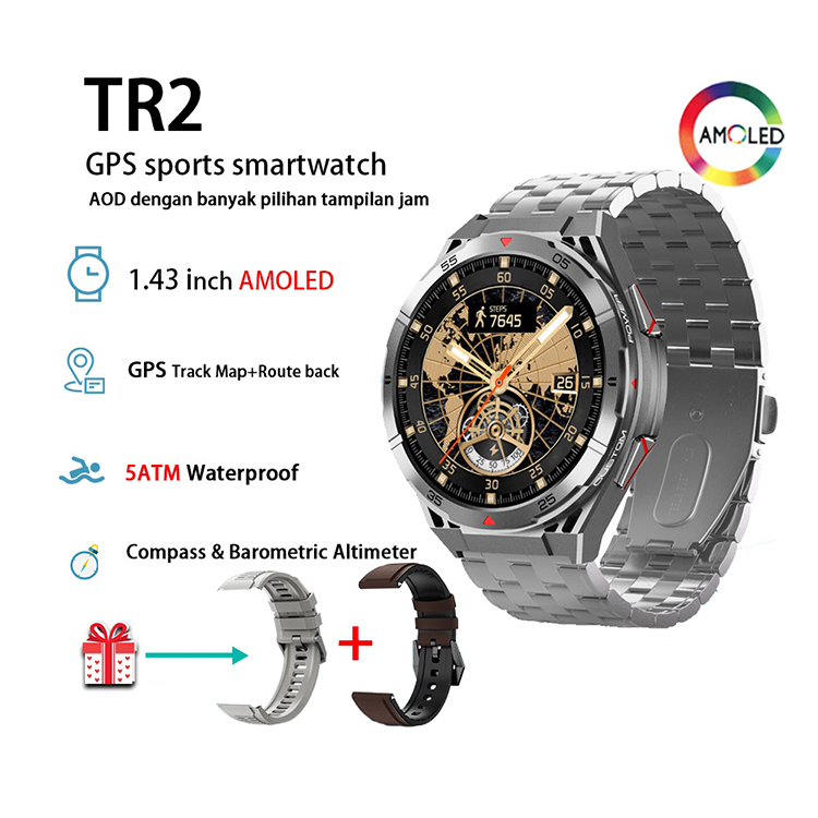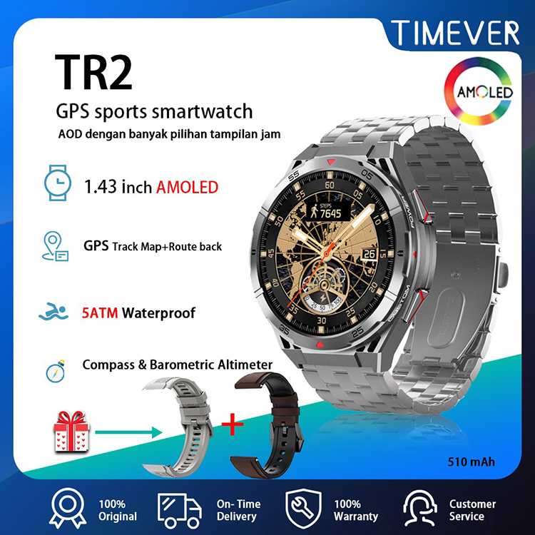 TIMEVER TR2 5ATM Built-in GPS Track Map Route Back AOD Jam Tangan Pintar Pressure Altitude Military Super Explorer