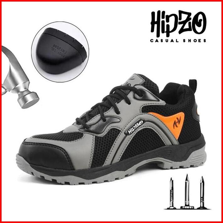 Hipzo Sepatu Safety M065 Terbaru Ujung Besi Kulit Sintetis Premium Untuk Pria Kerja Pabrik Proyek Tambang Shoes Boots Hi