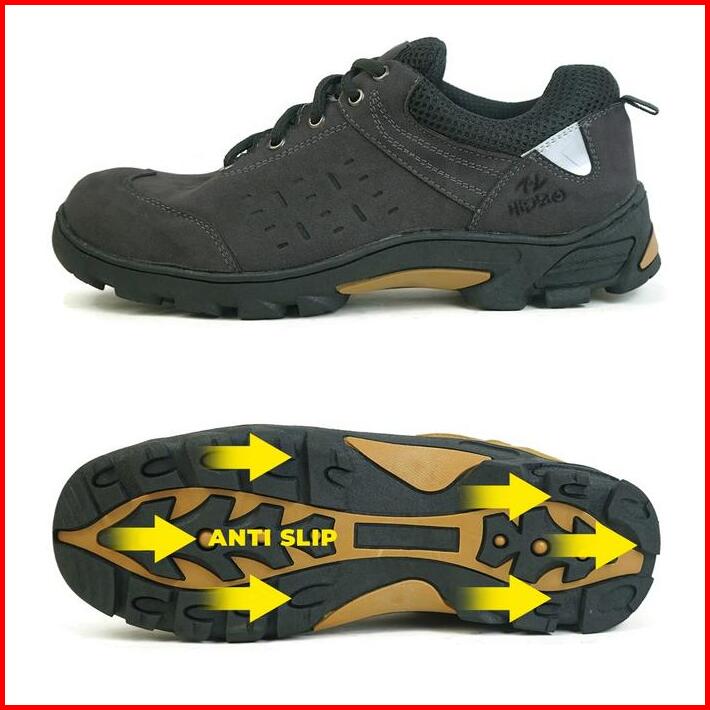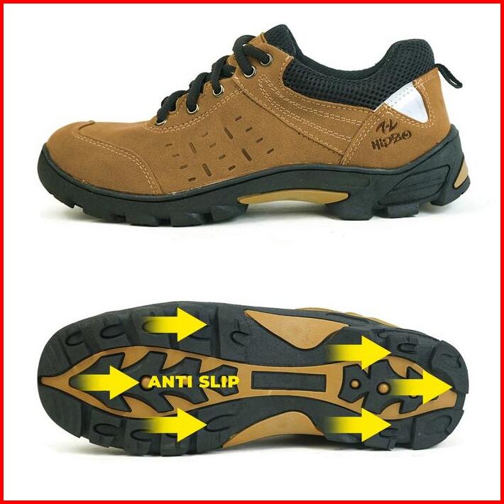 Hipzo Sepatu Safety Sport Ujung Besi M076 Untuk Pria Kerja Outdoor Ori Tambang Proyek Sol Full Karet Hitam Shoes