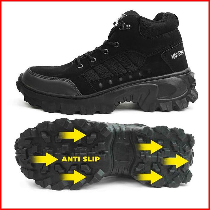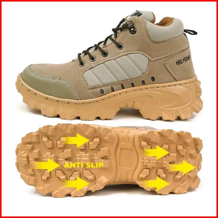 Hipzo Sepatu Safety Boots Tinggi M079 Untuk Unisex Ujung Besi Kerja Proyek Lapangan Shoes Pria